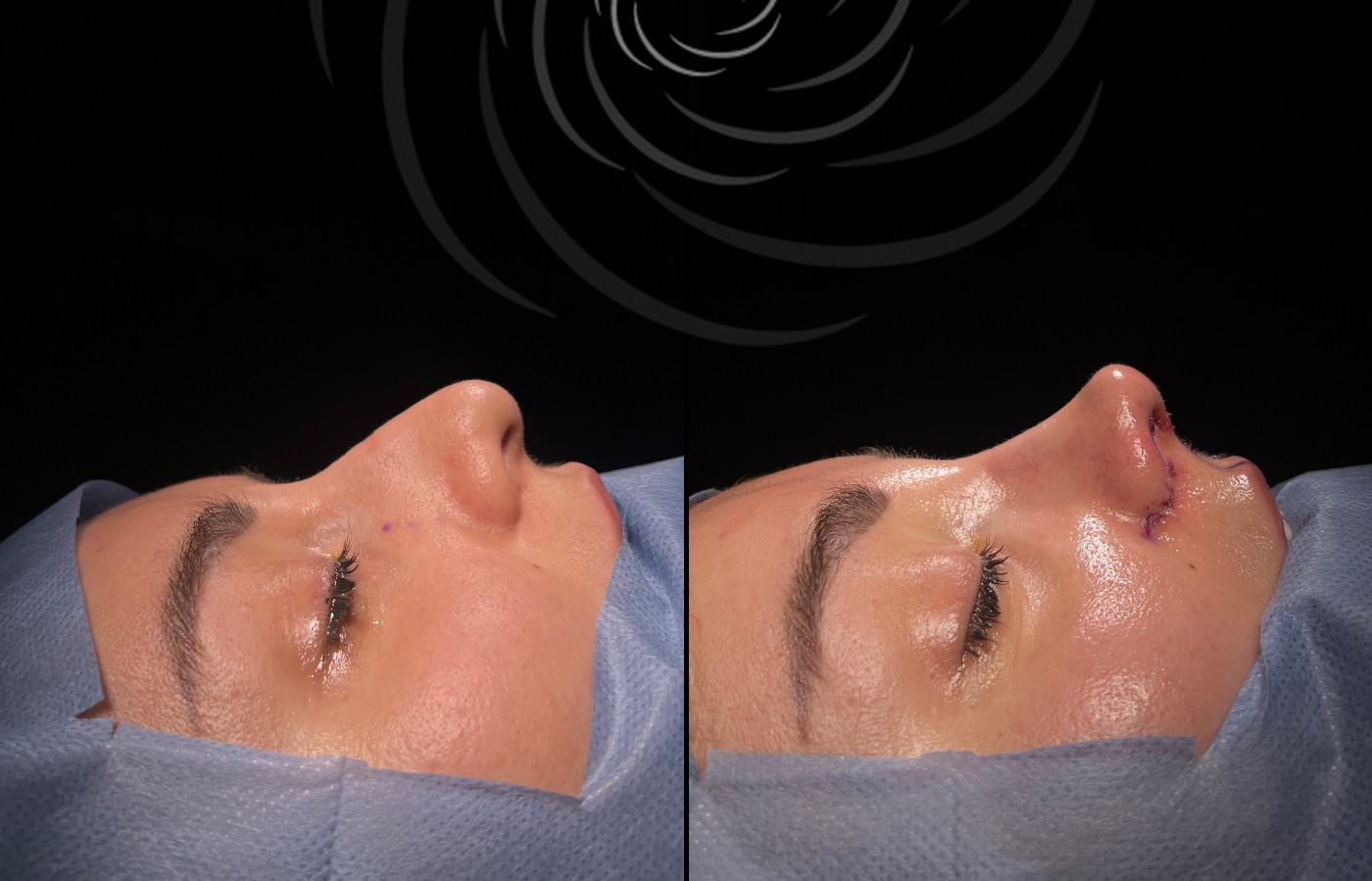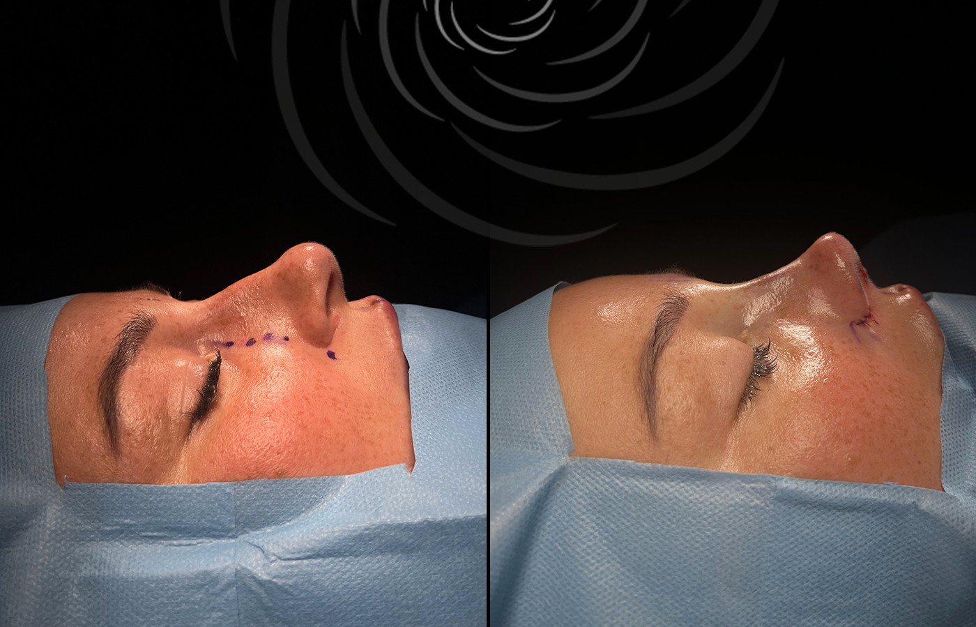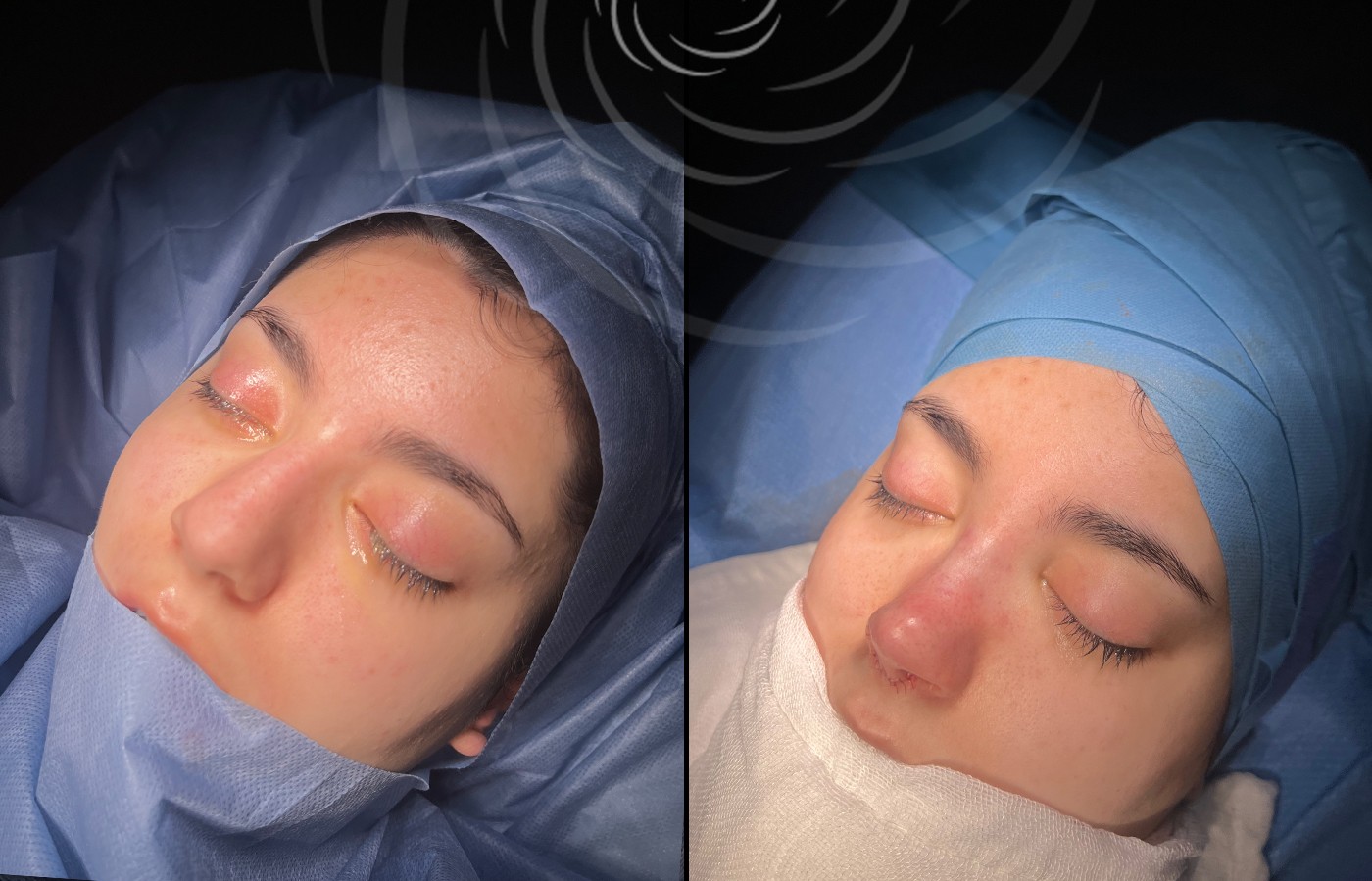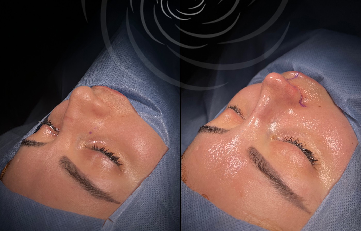 Po zabiegu mogą pojawić się obrzęk i siniaki, które zwykle ustępują w ciągu 7–14 dni. Większość pacjentów wraca do pracy po 1–2 tygodniach. Ostateczny efekt rinoplastyki widoczny jest po pełnym wygojeniu, czyli po 6 – 12 miesiącach.