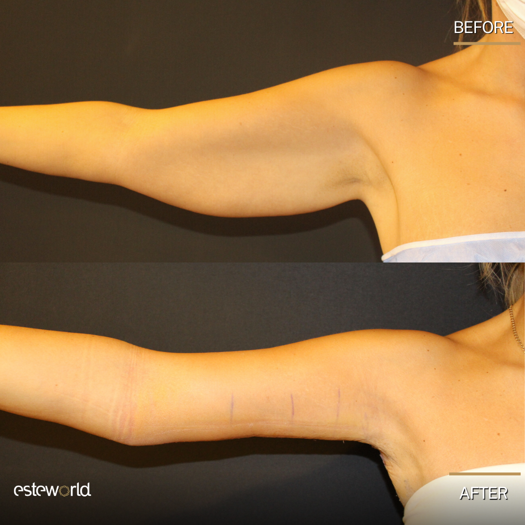 W Esteworld wykonujemy plastykę ramion z wykorzystaniem nowoczesnych metod, które umożliwiają: precyzyjne usunięcie nadmiaru skóry, modelowanie konturu ramion, redukcję tkanki tłuszczowej (w razie potrzeby z liposukcją), uzyskanie smukłego, jędrnego i harmonijnego efektu, minimalizację widoczności blizn dzięki precyzyjnym technikom szycia.