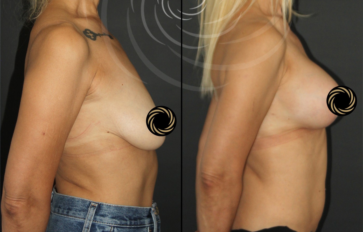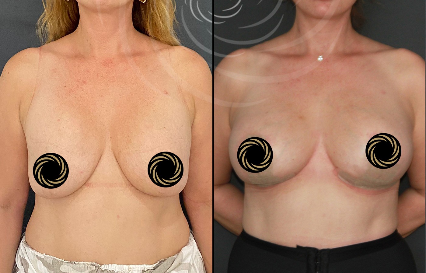 Jeśli oprócz opadania biustu występuje również utrata objętości, zabieg może zostać połączony z powiększaniem piersi implantami. Takie połączenie pozwala jednocześnie: unieść biust, przywrócić jego objętość, poprawić proporcje i symetrię.