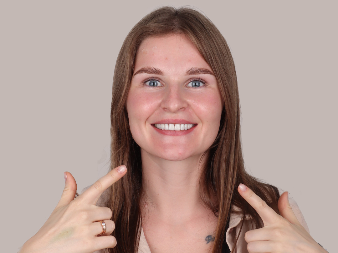 Przez 12 miesięcy po zabiegu zapewniamy bezpłatne konsultacje online, aby monitorować stan zębów, implantów i licówek oraz wspierać Cię na każdym etapie.